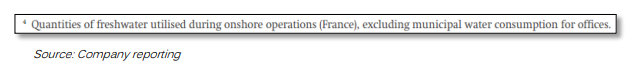 A company reports how many cubic metres of groundwater they have withdrawn. This number is then replicated by 3rd party data platforms and research providers. The footnote in the original reporting suggests that there is something a reader should pay attention to.