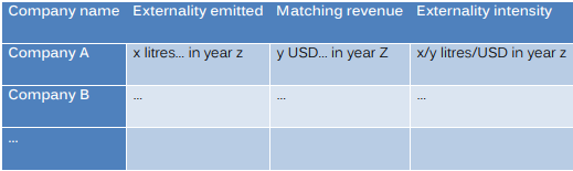 The resulting dataset should be consistent and normalized to eliminate company size and currency as factors in externality figures.